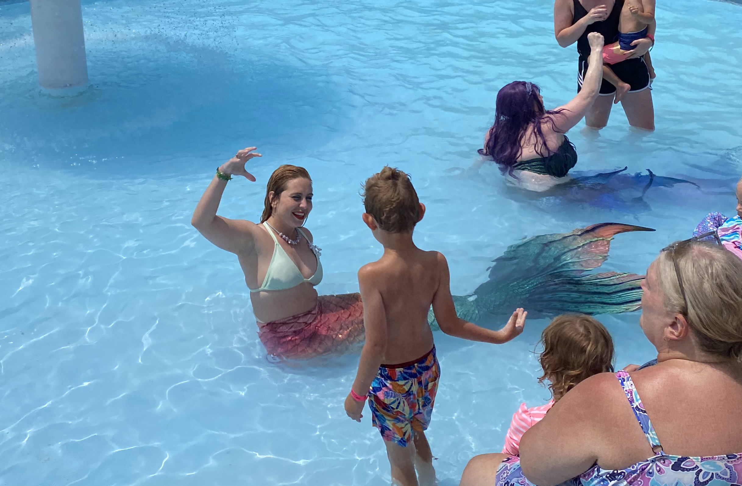My daughter had the honor of Mermaid Yelana coming to her 8th birthday party. Bubble heart blowing, & huge tail splashes!